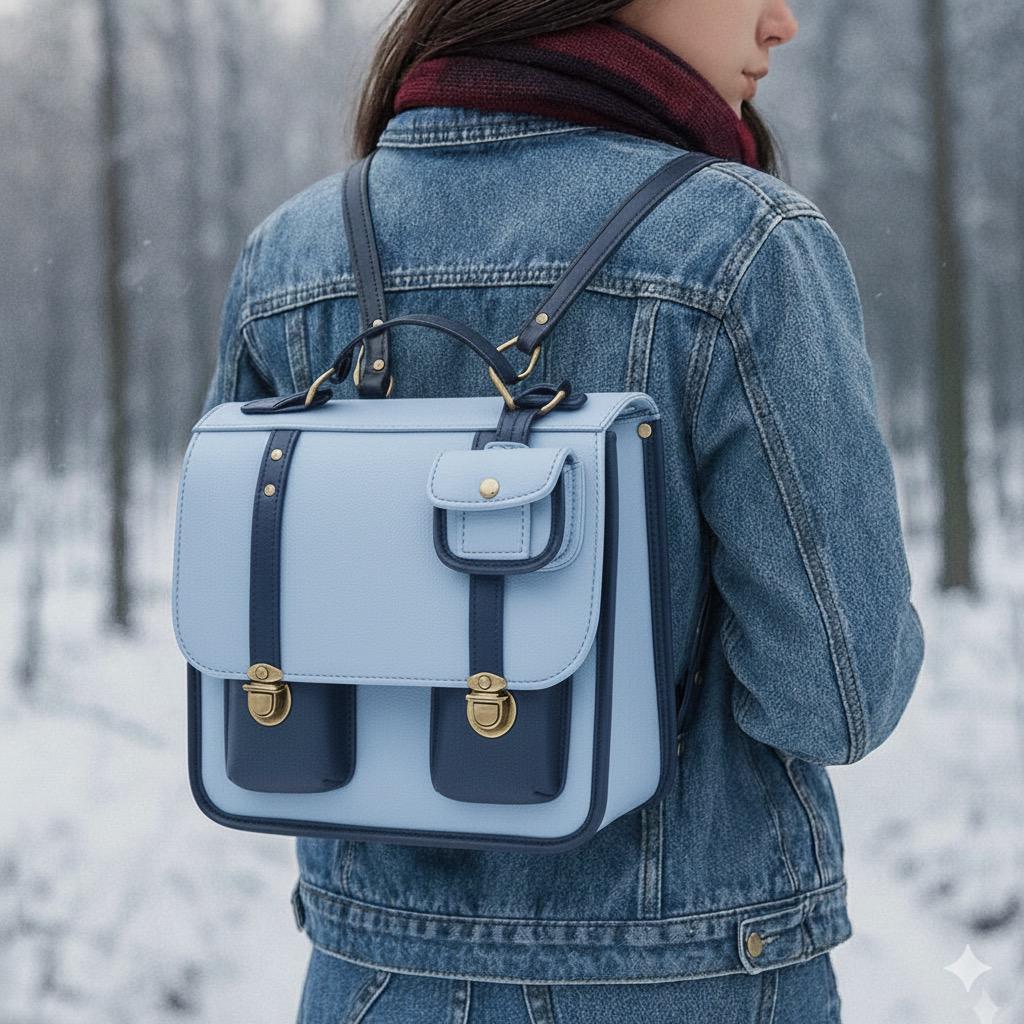 کیف دوشی دی (ترکیب آبی روشن و سرمه ای)با آویز( ارسال هفته دوم بهمن)