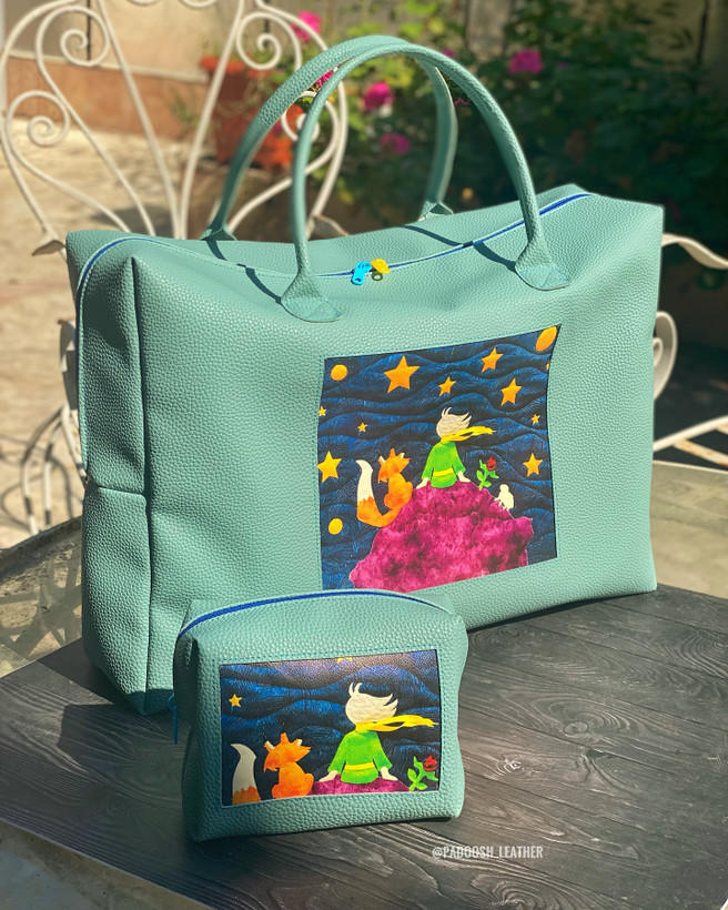 این ساک ها رو میتونید سایز دلخواه تون بدید مثلا صاحب اینکار خواستن با طول ۵۰ سانت کار براشون از هایلایت پیج اینستامون پنل هم انتخاب کردن طرح مورد علاقشون رو ماهم این ترکیب رو ساختیم و نتیجه شد این … بدنه رنگ سبز_آبی پنلش هم که شازده با کیف نظم دهنده